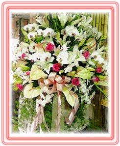 花材:香水百合,鐵砲百合,蝴蝶蘭,飛燕,白玫瑰