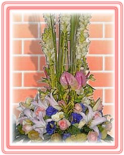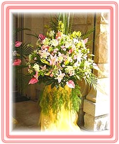 花材:馬可百合,火鶴,桔梗,太陽花,水燭葉草