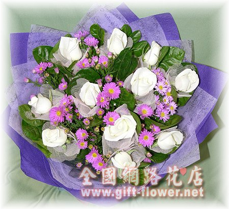 花材:白玫瑰11朵+茉莉葉+粉孔雀