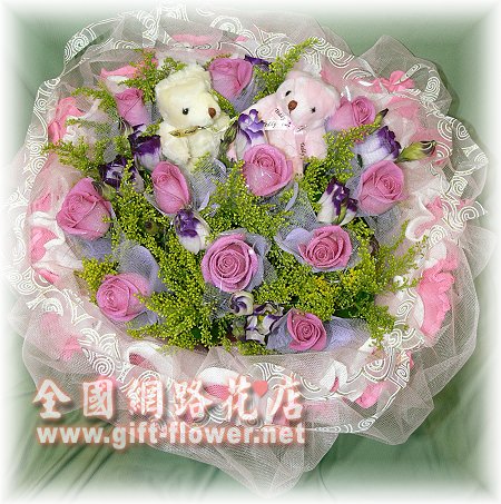 .熊熊桔梗紫玫瑰花束<我要訂購> |