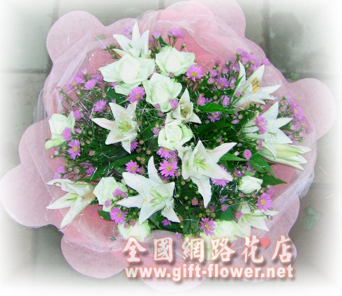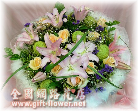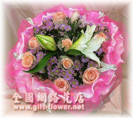 .精緻馬可百合玫瑰花束<我要訂購> |