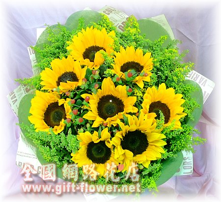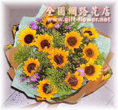花材:百合5朵, 向日葵5朵,紅玫瑰5朵